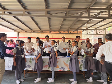 “આદરણીય કેન્દ્રીય ગૃહ, સહકારિતા મંત્રીશ્રી તેમજ ગાંધીનગર લોકસભાના લોકપ્રિય સાંસદ શ્રી અમિતભાઈ શાહ સાહેબના જન્મ દિવસ નિમિત્તે અમદાવાદ પશ્ચિમ લોકસભાના સાંસદશ્રી ડો. કિરીટભાઈ સોલંકી, અને ઇન્ડિયન ઓઇલ કોર્પોરેશનના CSR સહયોગથી સ્કુલ બોર્ડના 341 વિદ્યાર્થીઓને સ્કુલબોર્ડના બાળકોને સ્કુલ બેગ વિતરણ કાર્યક્રમ”