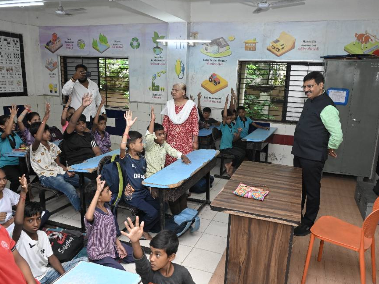 માન. સાંસદ શ્રીએ આ તકે શાળાની પણ મુલાકાત કરી સ્માર્ટ ક્લાસમાં વિદ્યાર્થીઓ સાથે સંવાદ કર્યો હતો.